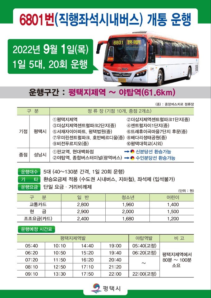 지난 1일부터 운행이 개통된 6801번